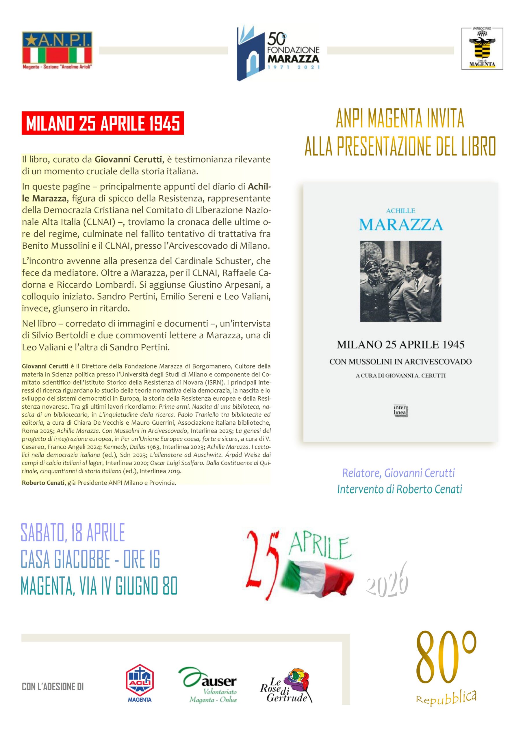 - ANPI Magenta -Presentazione del libro curato da Giovanni Cerutti ” Milano 25 Aprile 1945″ – 18.04.2026