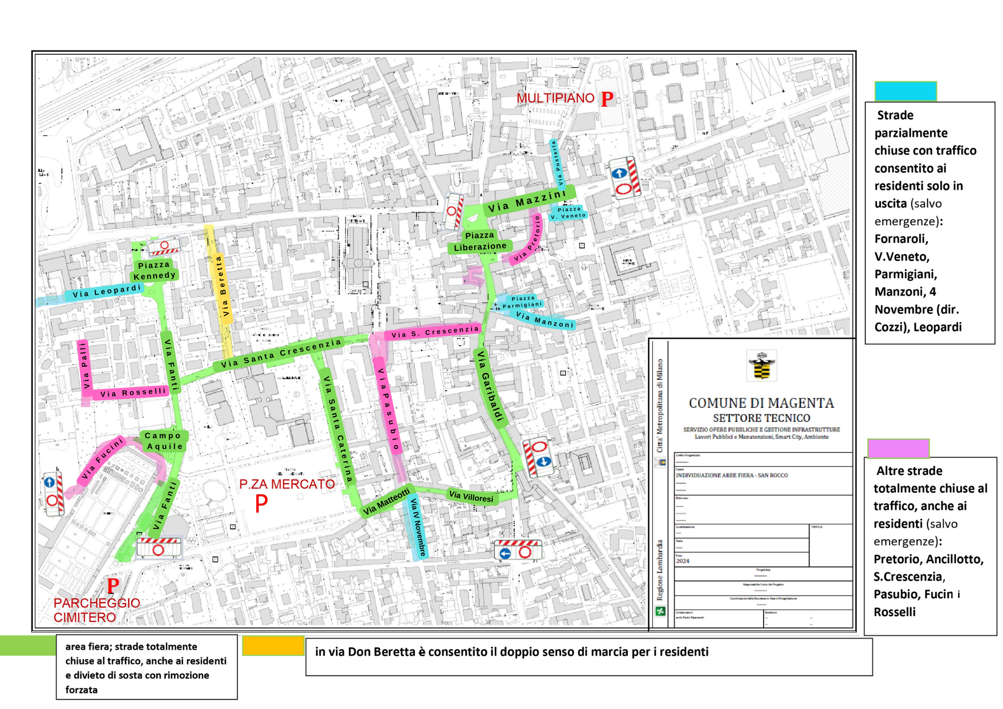 Parcheggi consigliati: multipiano di via De Gasperi che sarà gratuito, parcheggio del cimitero e Piazza Mercato (nelle aree non interessate dal cantiere).