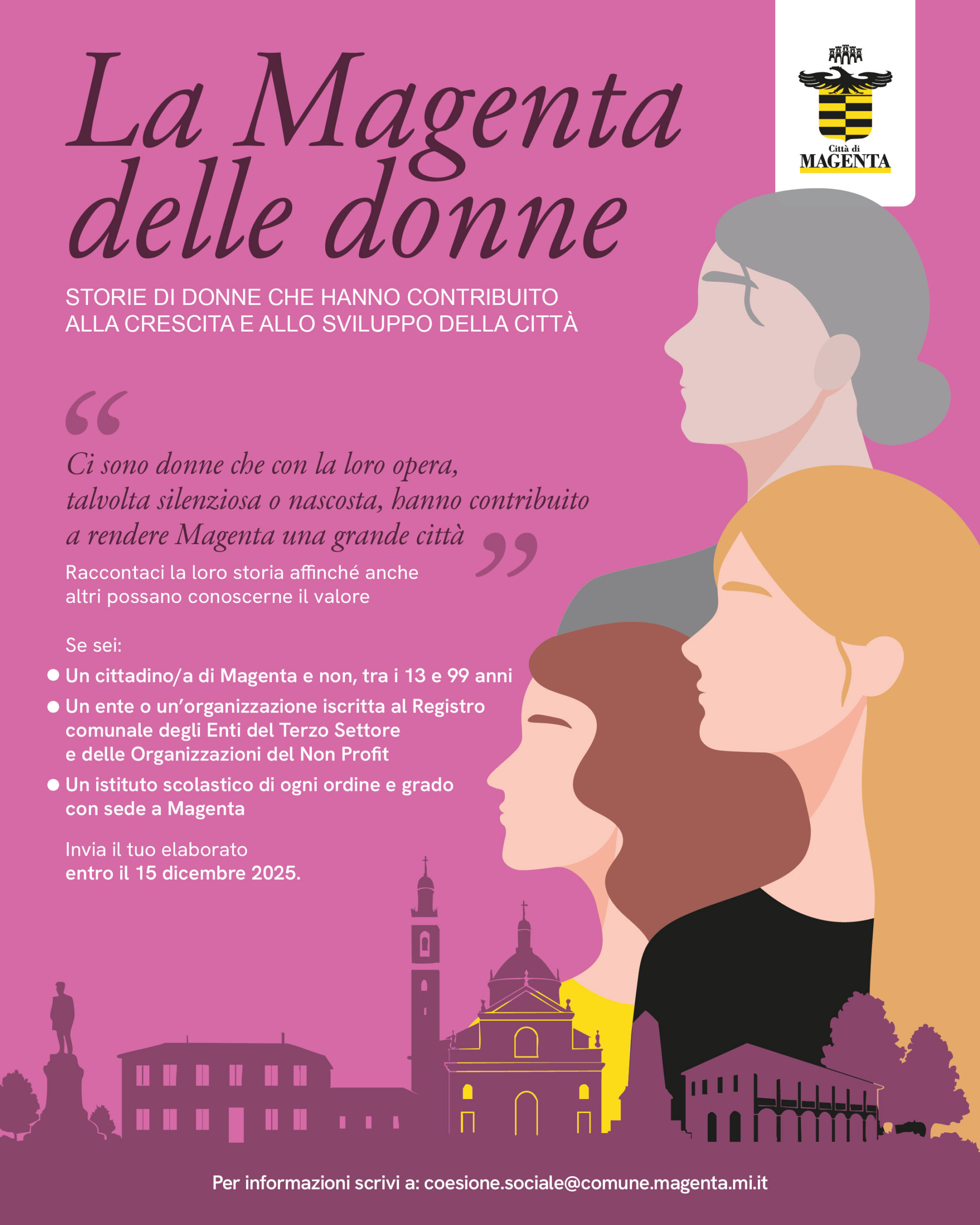 Gli elaborati dovranno essere inviati entro il 15 dicembre 2025 all’indirizzo coesione.sociale@comune.magenta.mi.it,