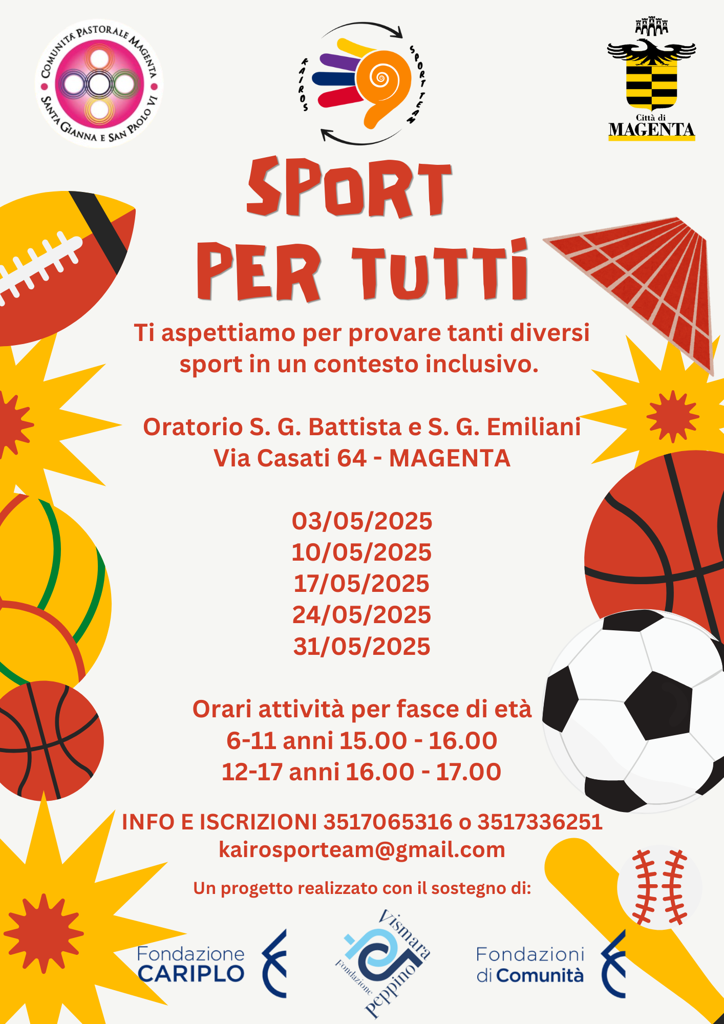 Il progetto, la cui partecipazione è gratuita, è reso possibile grazie al finanziamento ottenuto dalla Comunità Pastorale per il progetto “Al tuo fianco: alleanze oratorio e territorio”, finanziato da Fondazione Cariplo, tramite la partecipazione al bando “Porte aperte”, del quale anche il Comune di Magenta è partner.